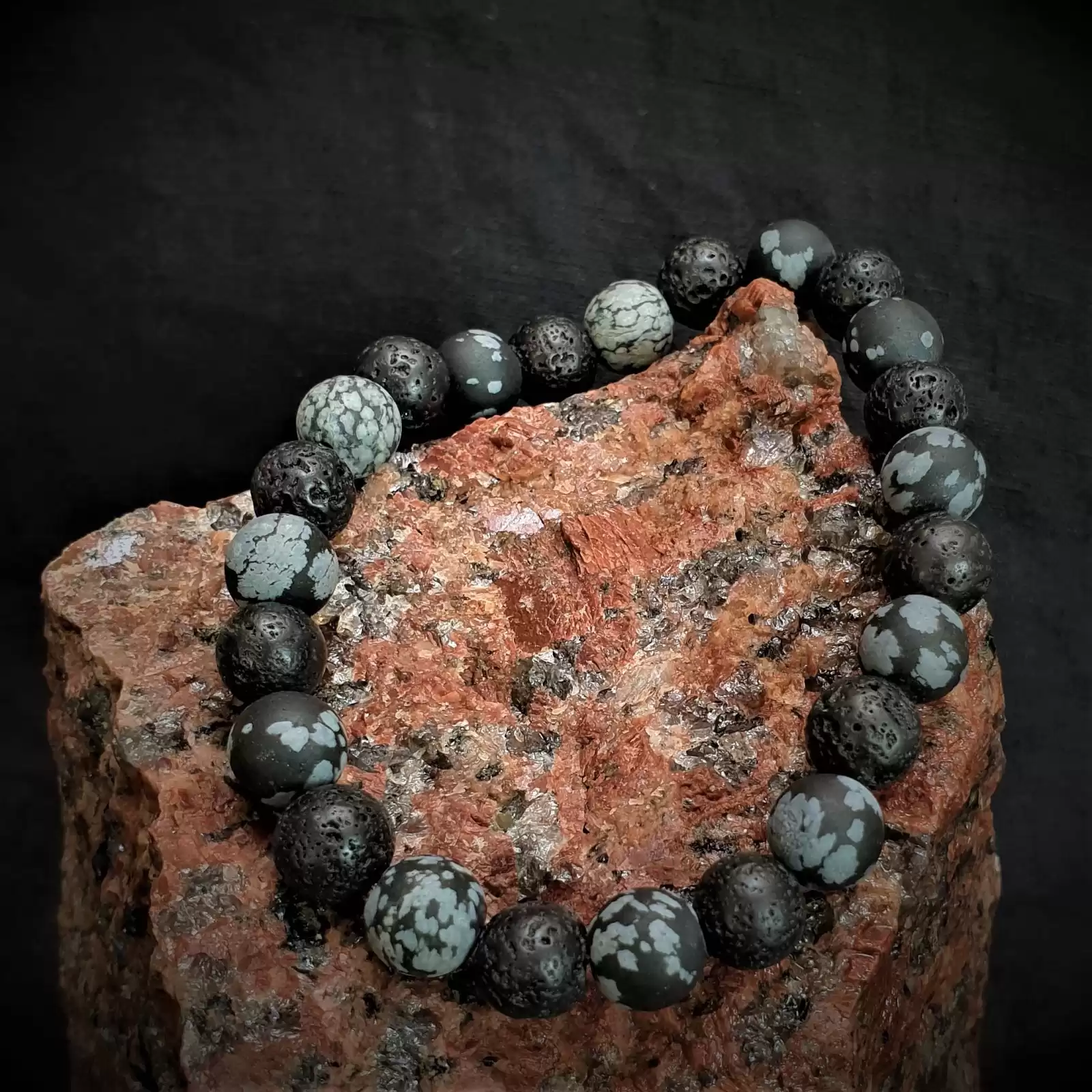 Bransoletka "GREY EMINENCE" (obsydian śnieżny, lawa)
