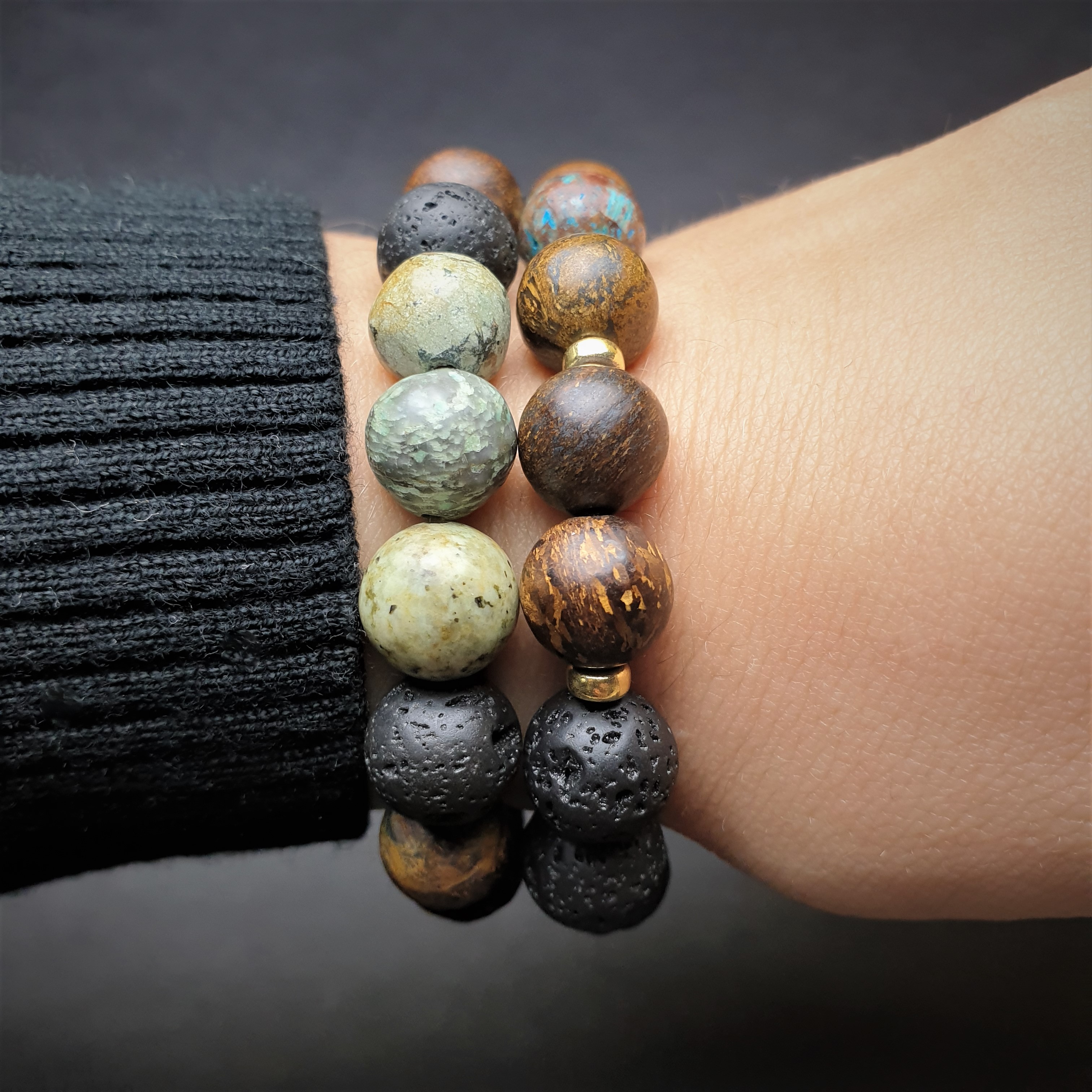 Zestaw bransoletek z surowych kamieni w kolorach natrury "EARTH & MOUNTAIN"