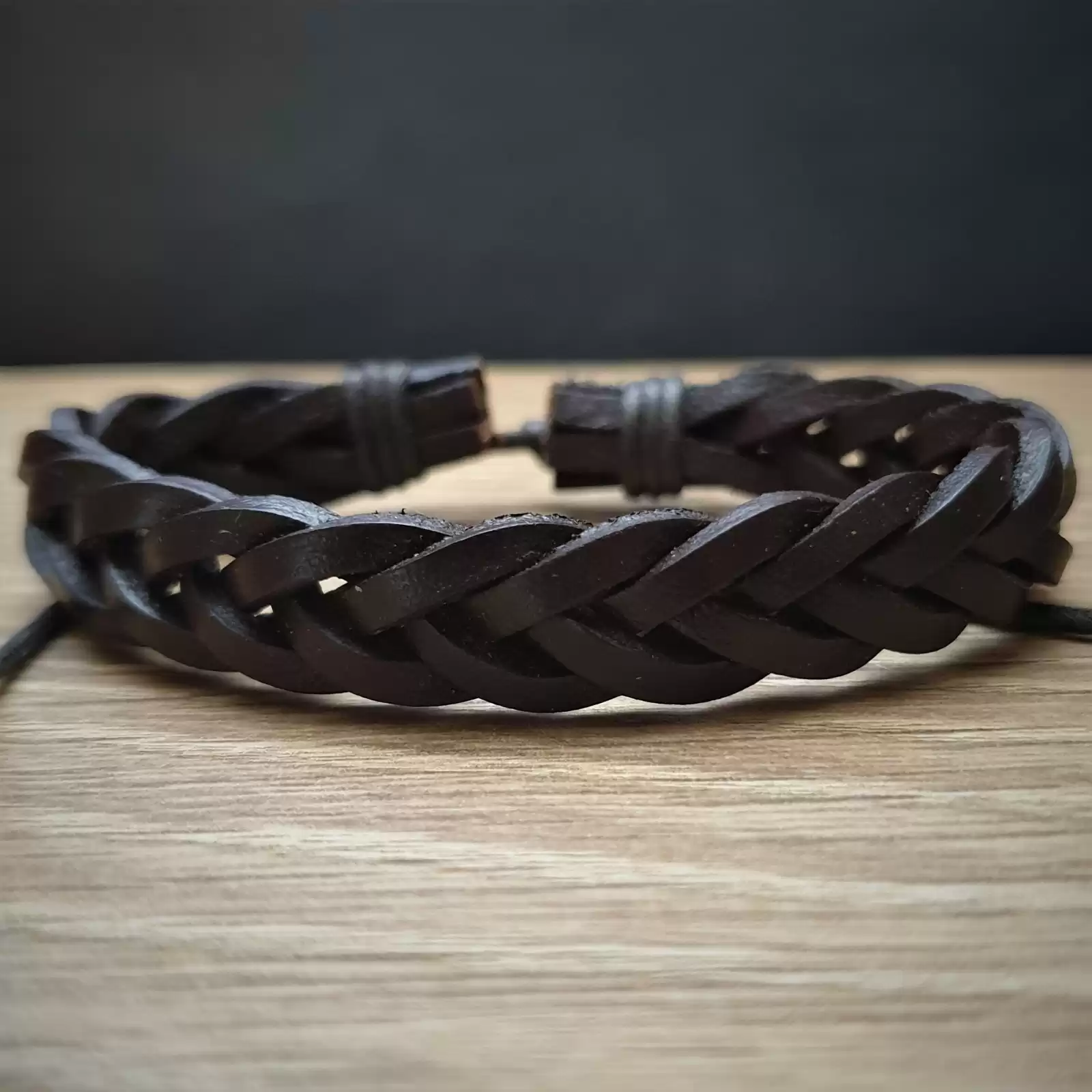 Skórzana bransoletka w kolorze ciemnego brązu z regulacją obwodu. Z pewnością pomoże uzewnętrznić styl i charakter swego właściciela. Będzie wyglądała wspaniale noszona solo jak i w zestawieniu z innymi bransoletkami. Będą do niej pasowały te ze skóry jak i drewna czy kamieni naturalnych. Pasuje na nadgarstek o rozmiarze/obwodzie: od M (16cm) do XXXL(20cm).