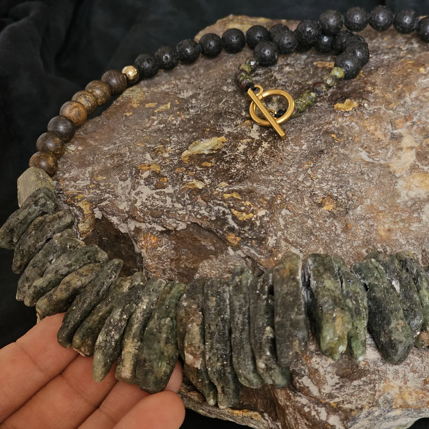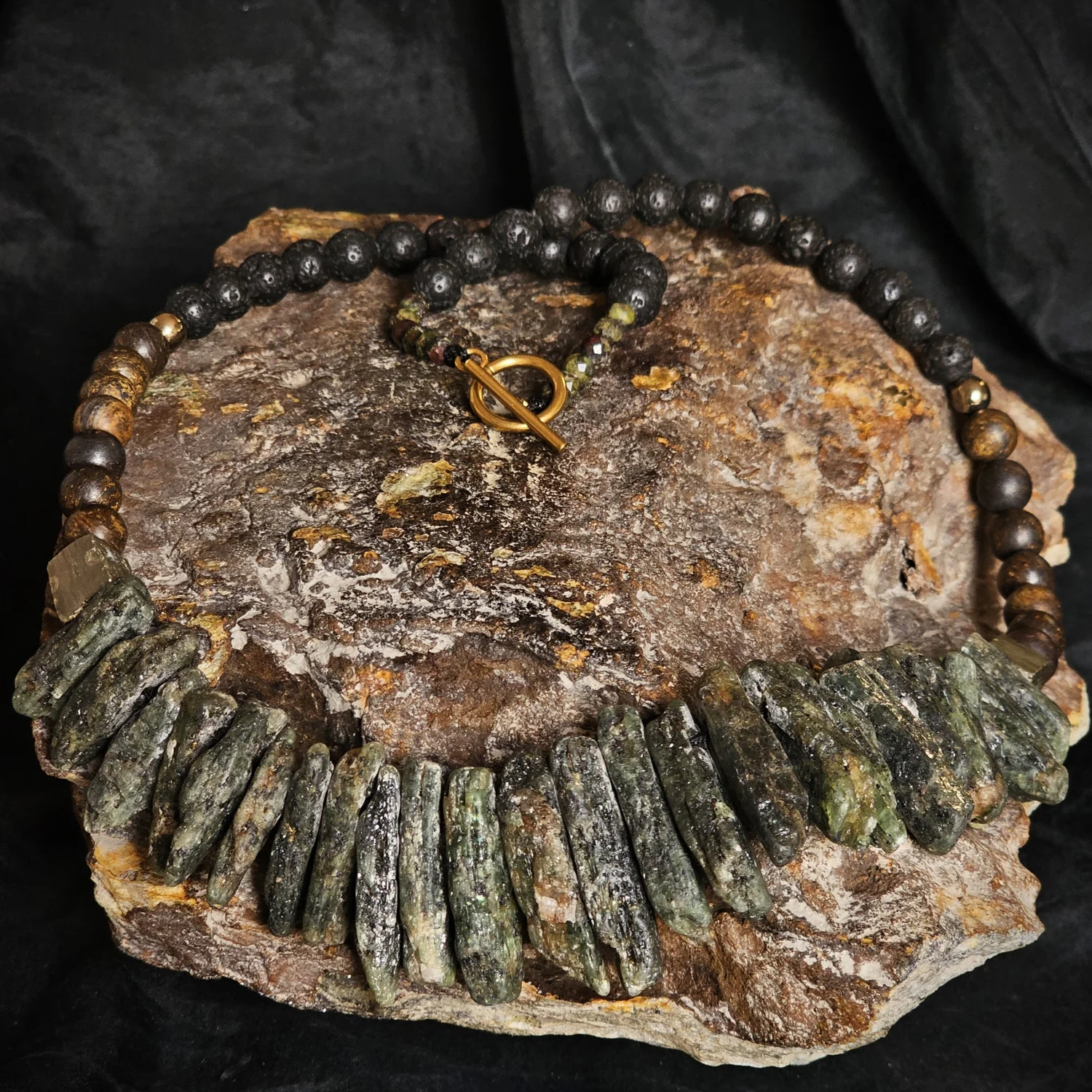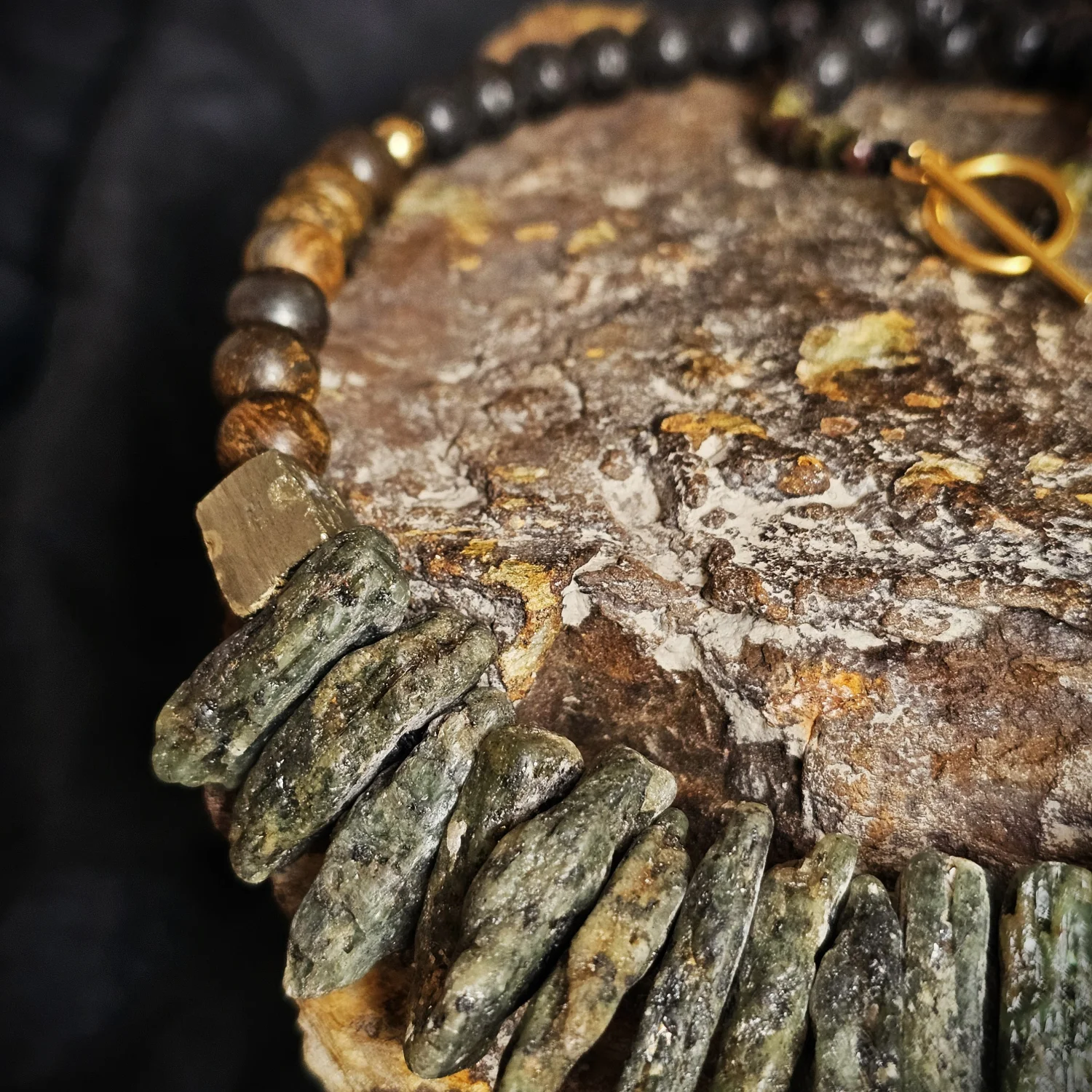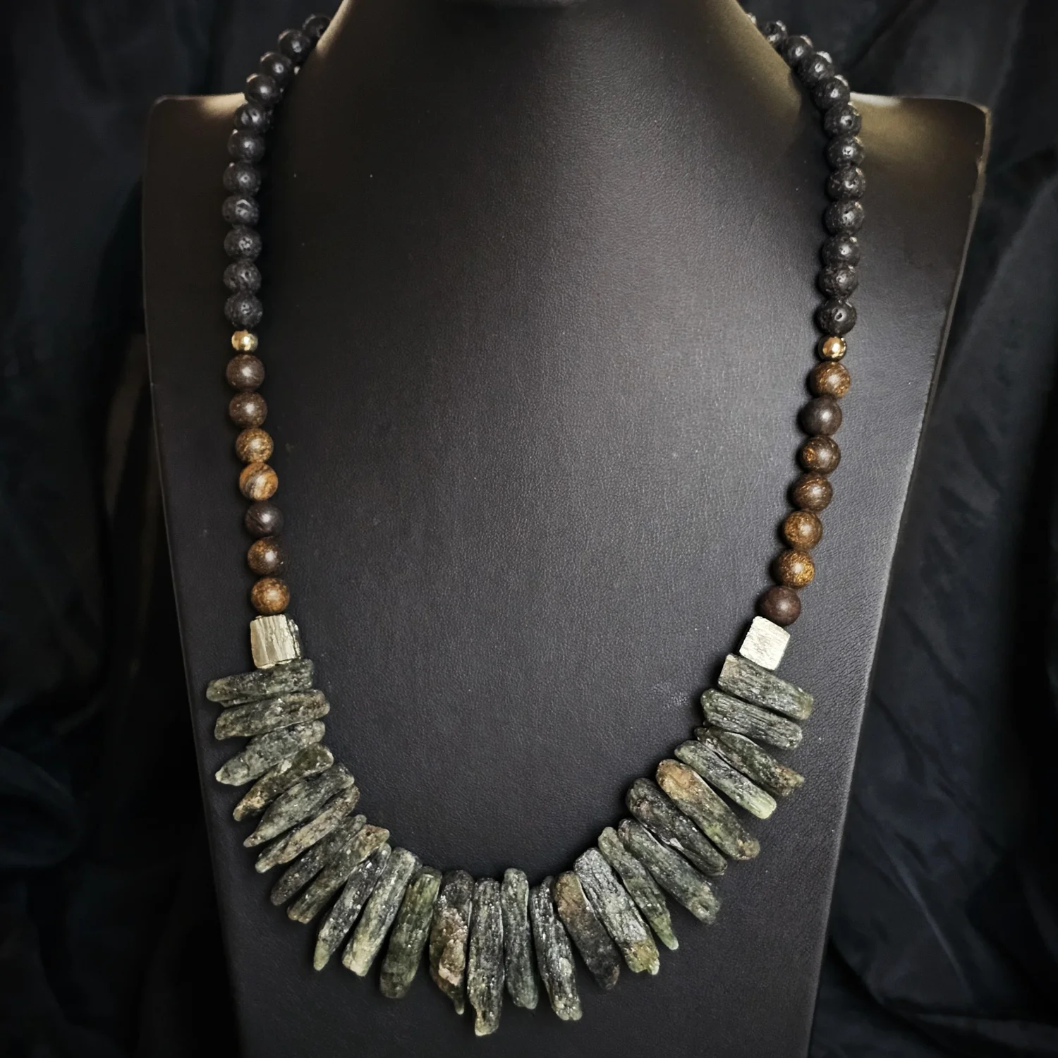 Naszyjnik "The Wild Spirit of the Forest" ( jadeit tybetański, piryt, bronzyt, lawa, hematyt, jaspis)