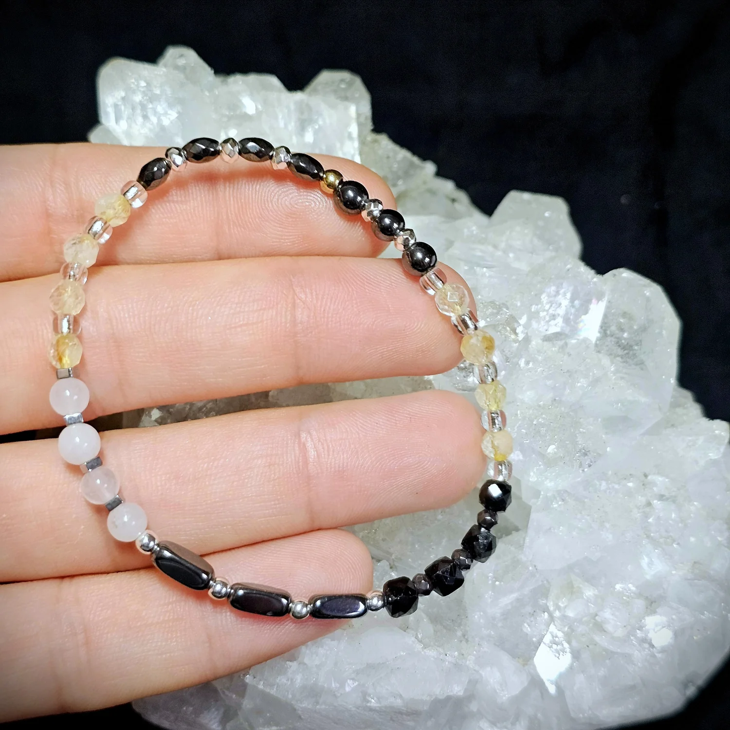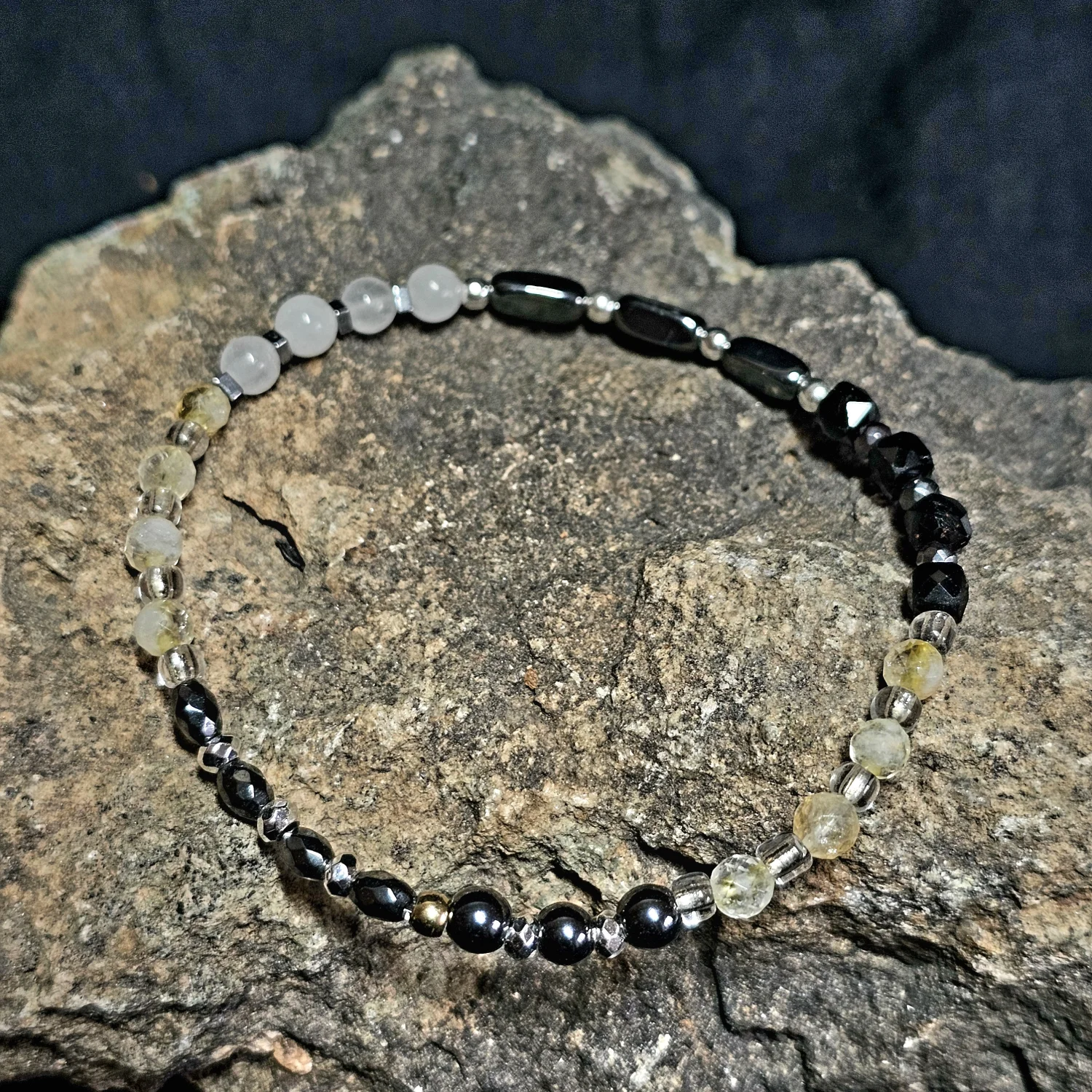 Bransoletka "IRON OXIDE III" (turmalin, hematyt, kamień księżycowy, cytryn)